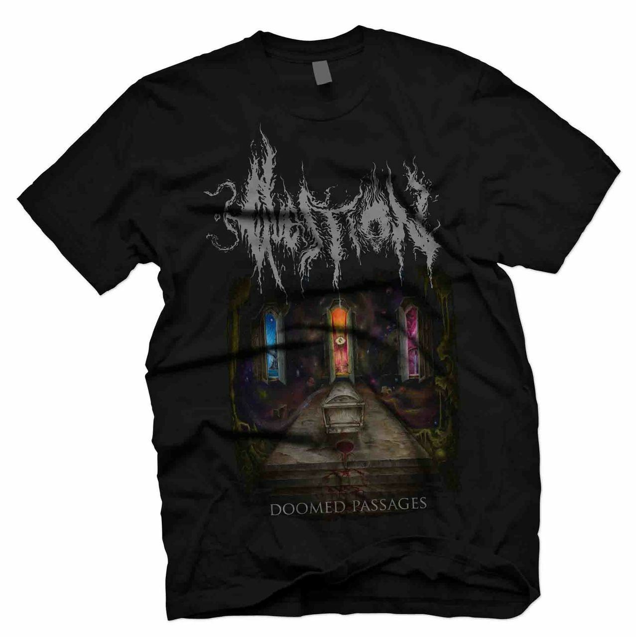 Official QUESTION "Doomed Passages" T-shirt. Printed on heavy duty Gildan "Ultra" brand 100% Cotton shirts. Limited quantities in each size.
